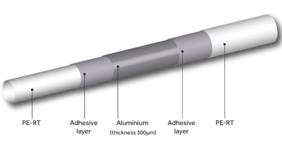 PERT-ALUMINUM-PERT管道主要用于地板和散熱器加熱,或越來越多地用于安裝飲用水。管道是五層的,在技術(shù)上它是一種非?,F(xiàn)代且非常精確的制造技術(shù)??梢哉f,在兩毫米的壁厚中,它有5個不同的層,可承受10巴冷水的壓力。制成外層和內(nèi)層的材料是耐高溫性的聚乙烯。中間有一層厚度為0.3 mm的鋁箔,對接焊接,為管道提供了氧氣屏障,柔韌性和強度。在這些層之間,有一種特殊的膠水將這些材料結(jié)合成一個整體。該管道可以以10 D的半徑彎曲,或者可以在16厘米距離的加熱設(shè)備中進行包裝。管道也用于安裝飲用水,在這種情況下,根據(jù)方法和安裝規(guī)格,位于第二保護管中的常用管道為紅色,用于熱水,藍色為冷水。