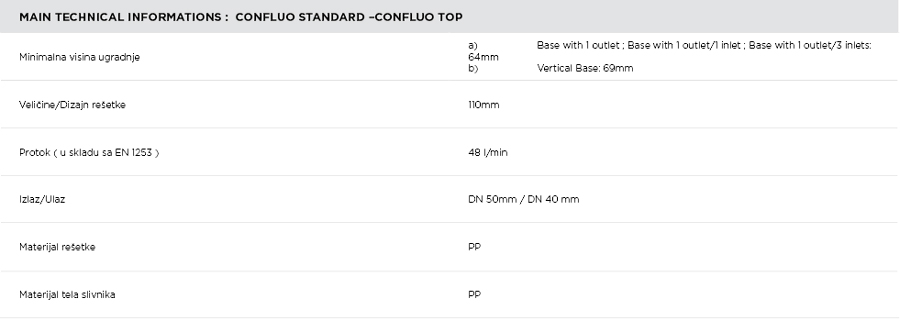 Peštan公司Confluo在一個(gè)單一的尺寸,并與4個(gè)不同的堿基(該水平臺(tái)1與輸出,與水平臺(tái)1的輸入/輸出1,水平基座3與入口/出口1,垂直堿)其頂部模型。所有基地Confluo頂模型具有DN和DN輸出50毫米40毫米與高達(dá)48升/分鐘的流速進(jìn)入。的取決于模型124毫米至135毫米最小高度。